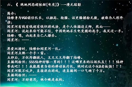 六、《绝地网恋超级甜[电竞]》—-漫无踪影