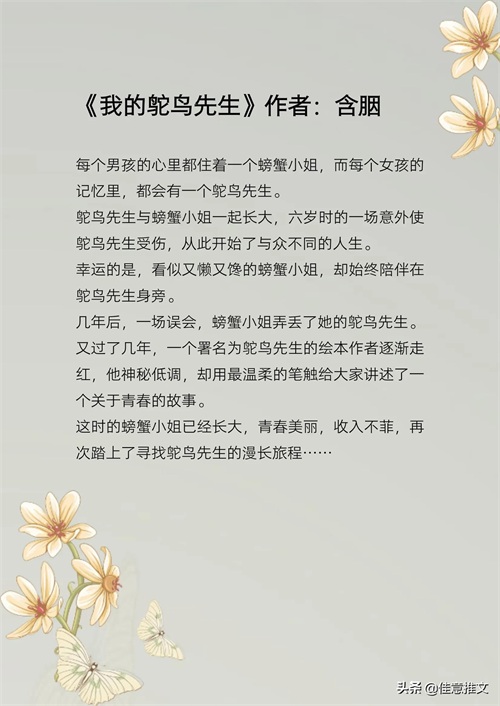1.《我的鸵鸟先生》作者:含胭/(双臂)