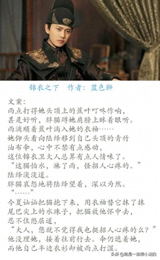 看了《锦衣之下》陷入任嘉伦的颜里出不来了,从此,所有的锦衣卫题材小说都有了脑补的脸。