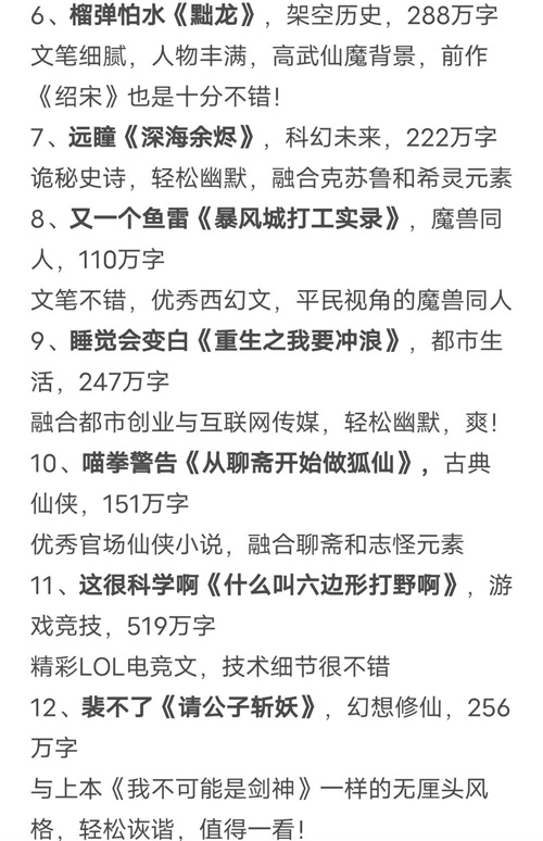 12、裴不了《请公子斩妖》,幻想修仙,256万字