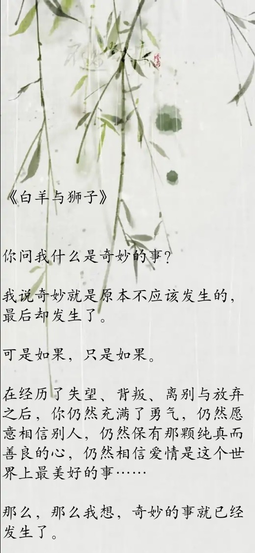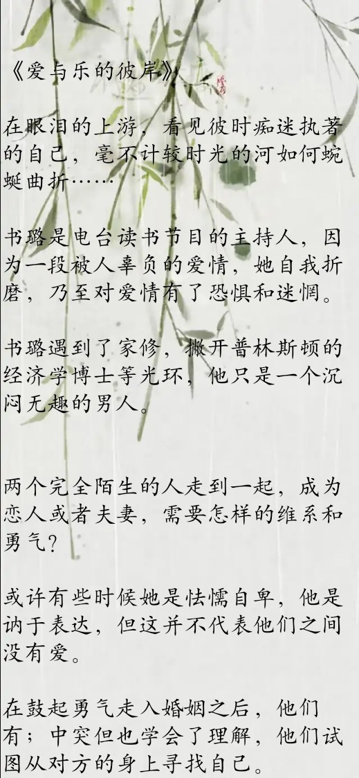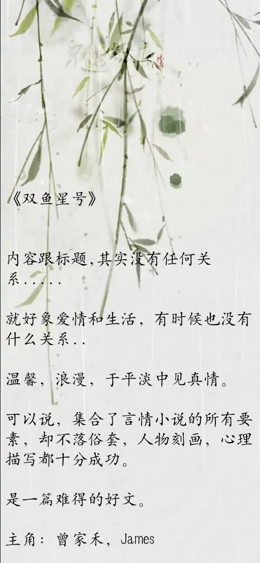春十三少的文风,不浮夸,不做作,我是超级喜欢的,就拿之前推荐过的《AB日记》来说,发生的事情很平常,遇到的人不完美,经历的事有过伤害......这一系列构成了整篇故事和两个饱满的人物。