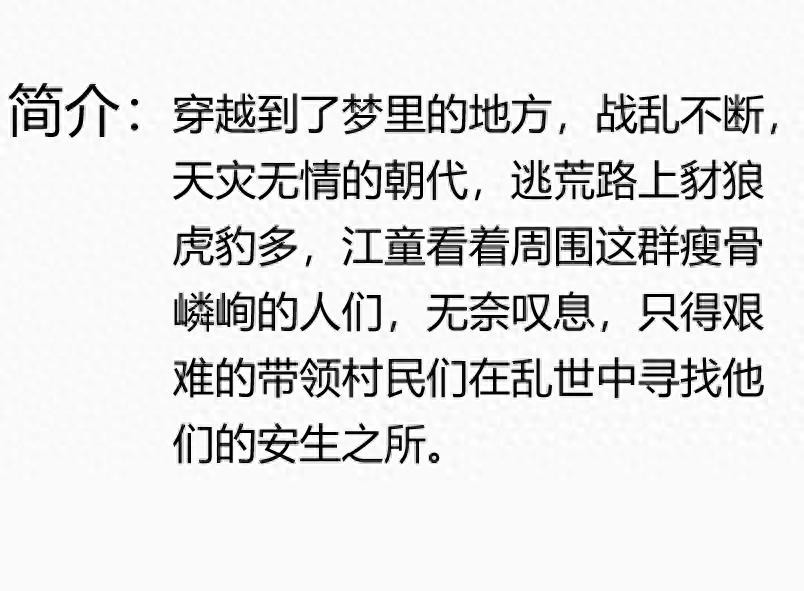 点评:喜欢逃荒文,体现了人之初,性本善,团结一致度荒年。环境艰苦,挺温馨,生活艰苦却互爱。但是男主的人设吓退不少人,但是总体质量不错,推荐。