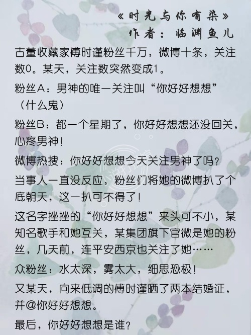 你可能会喜欢的往期推送:【破镜重圆】【青梅竹马】【娱乐圈】【太子】【学习】