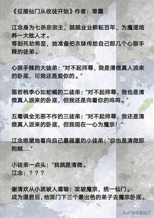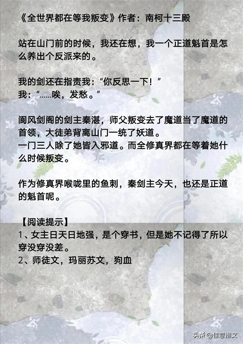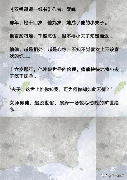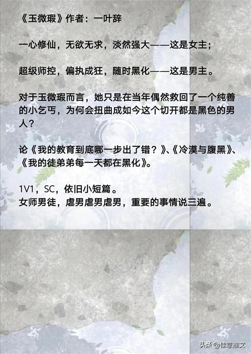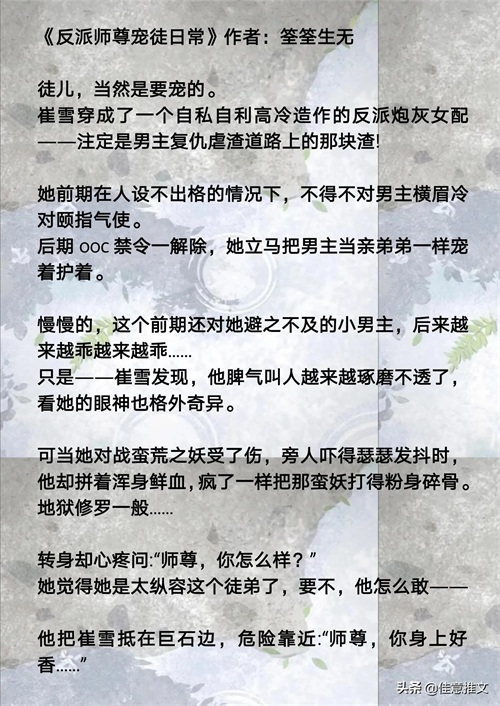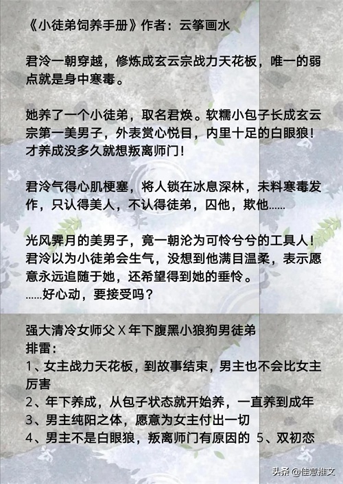 今天推荐的是女主是师父,男主是徒弟的小说,这一类型的小说还挺少的,师徒文好像男主是师父的多一些,不过这些读来也是一番滋味,如果喜欢的话就去看看吧!
