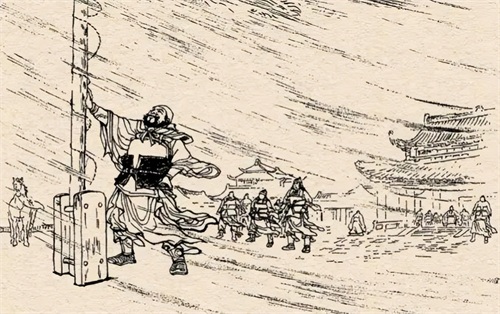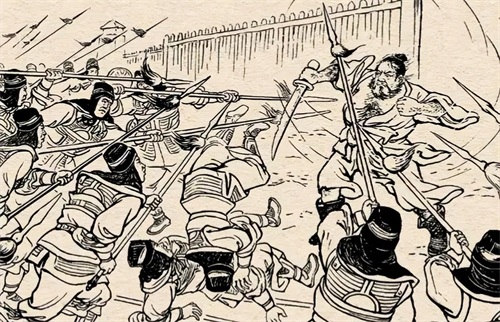 而典韦带领十几人死战抵抗敌军,典韦手持长戟左右攻击,身上多处受伤,敌军冲上前,典韦就用双臂夹住两人打死,场景震撼使得敌军不敢往前。