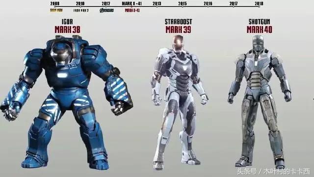 漫威电影宇宙中战甲属Mark系列,而漫画主世界中战甲属Model系列。电影版在漫画原版基础上有一定的变动。从《钢铁侠》到《复仇者联盟3》里一共出现了48套战衣,个人整理了一下。