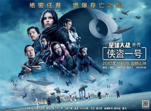 年初的《星球大战7:原力觉醒》在国内首映,最终票房高达1.241亿美元(8.25亿人民币),在海外市场中仅次于英国。加上华人演员姜文、甄子丹的参演,业内普遍看好《侠盗一号》的最终票房超过《星球大战7》。