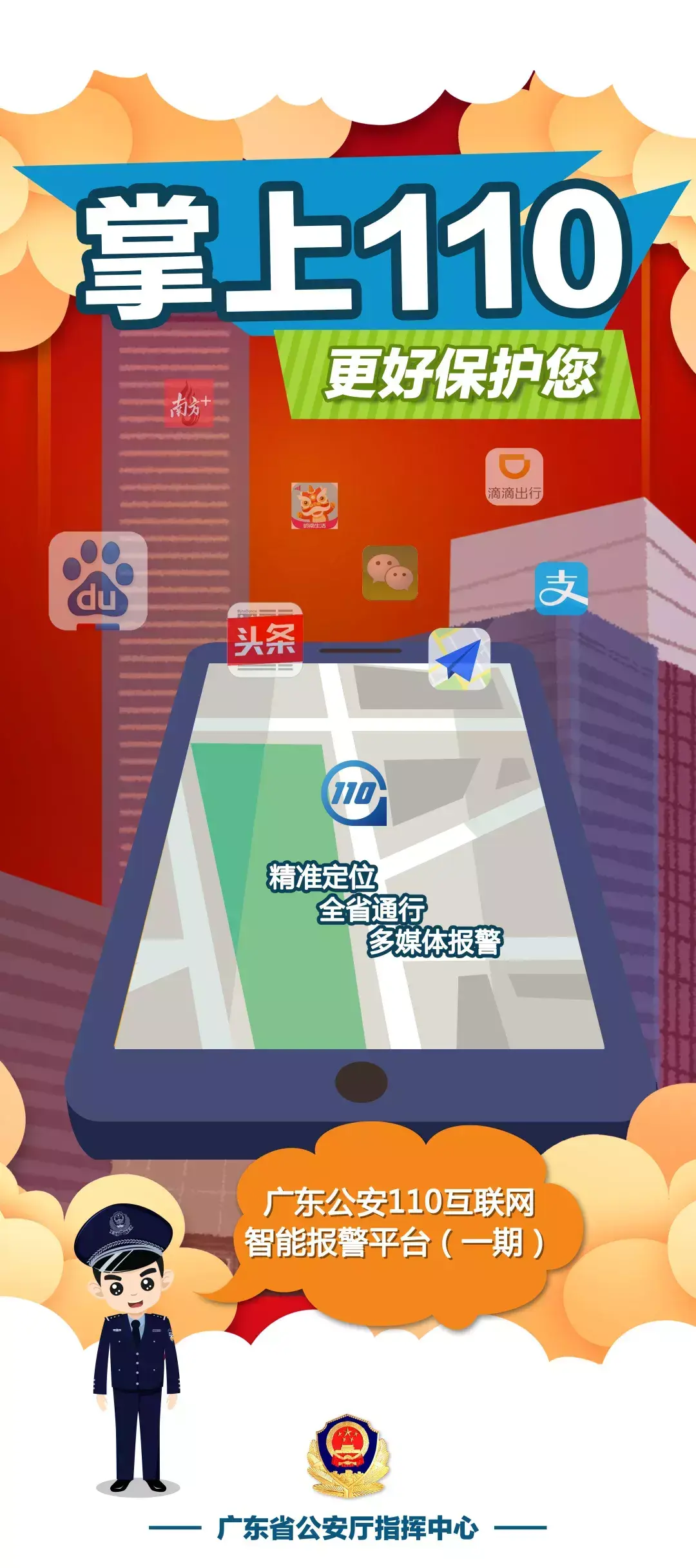 1月10日,在110成立33周年之际,广东省公安厅推出一款基于互联网通讯的新型服务群众报警方式,能更精准确定报警人位置,在多个平台设有报警服务入口,同时支持语音、视频、图文等多媒体报警,为服务群众提供安全便利和保障。