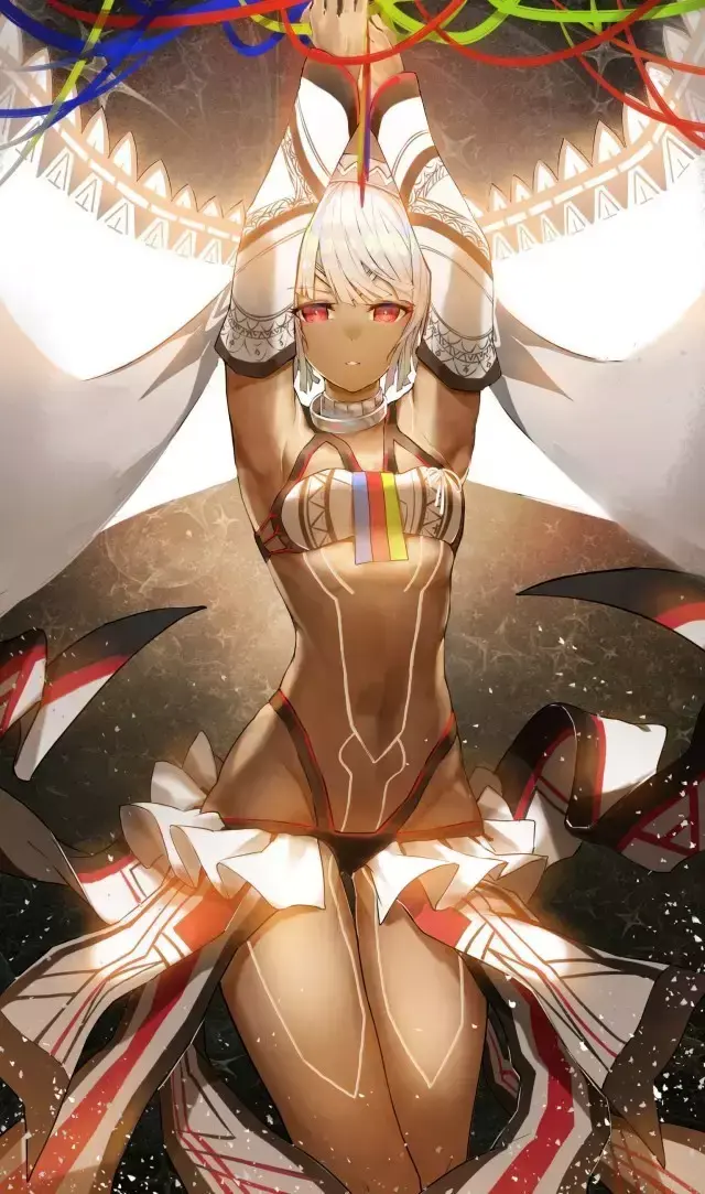在型月世界里,阿提拉是一位匈人少女:一头美丽的银发,褐色的皮肤,赤色的眼睛,纤细的身材,以及象征力量的“星之纹耀”(在之后的更新中会根据fate extra的剧情介绍),充分的表现了一位异域美少女的独特气质。作为小编本人真正喜欢上这个角色是因为小编去玩了fate extra。小编会在其二中为大家详细介绍。