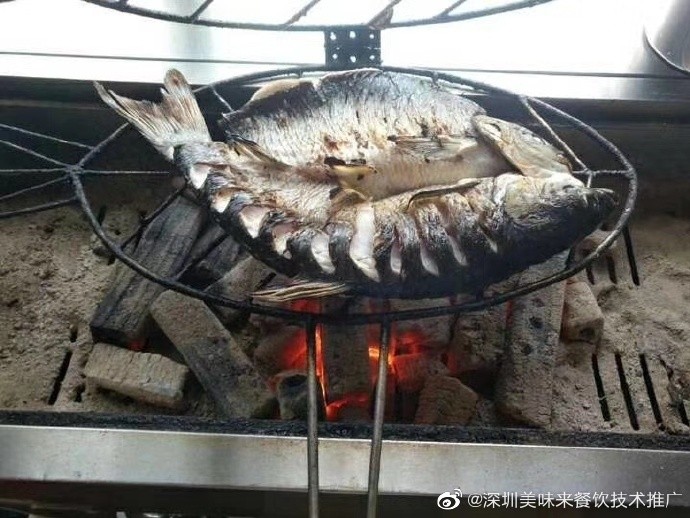 “万州烤鱼”是属于重庆万州特色传统名菜。把鱼剖洗净后平放在铁夹中,放在炉上烤熟后,平铺在铁盘中,浇上用多种调味品炒出的底料,放上西芹、魔芋等菜品,放于炭火上即可食用。