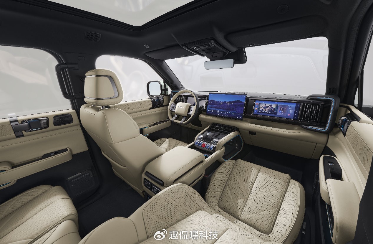 智能座舱,舒适拉满内饰升级后排通风加热、电动方向盘等配置,AI智能座舱支持语音交互、手车互联,可画画、导购甚至作诗。标配“冰箱彩电大沙发”,4.5L冷暖冰箱、Nappa真皮按摩座椅、18扬声器帝瓦雷音响,打造移动豪华空间。