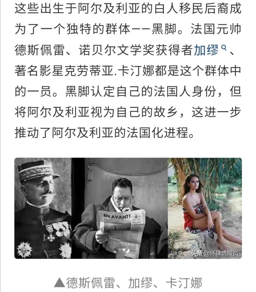 1、阿尔及利亚欧裔回归移民:俗称黑脚,他们人数最多。1962年,约80万黑脚离开阿尔及利亚,其中51.2万人在当年的五月至八月间离开阿尔及利亚返回法国;