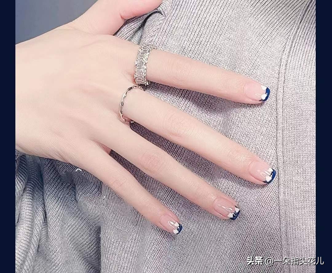 第十款:干净可爱的藏蓝色短款法式,搭配云朵彩绘。