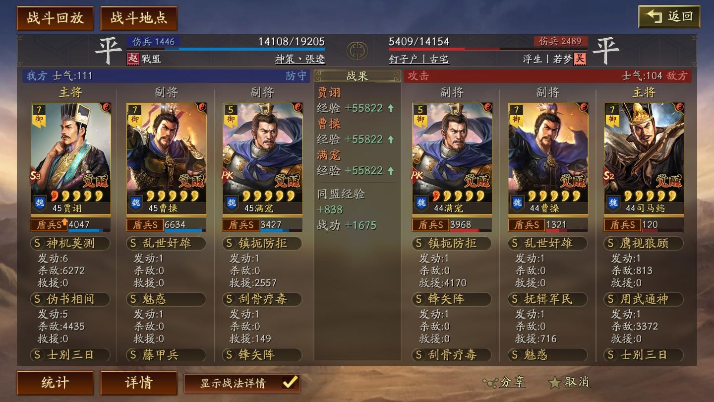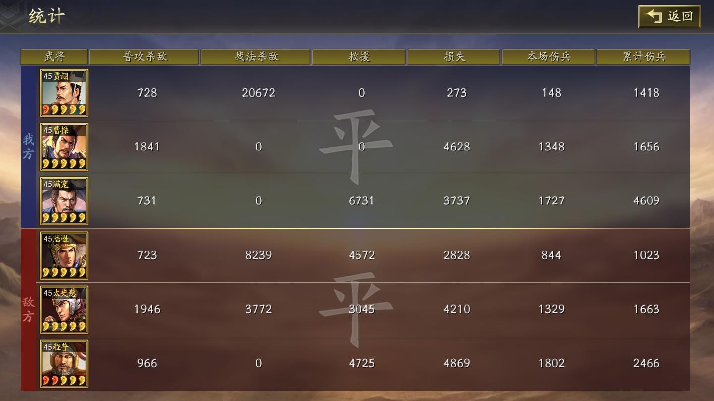 还有这场战斗贾诩对战司马懿,两个队伍都是标准配置,可以看出我方优势明显!
