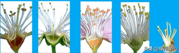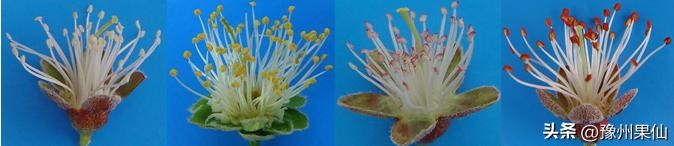 花药颜色指桃花朵刚刚开放,花药尚未开裂时的花药颜色,分为白色、黄色、浅褐色和橘红色。白色花药往往花粉不稔(无花粉,不能坐果),浅褐色花药的花粉也极少。