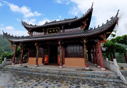 牛头山相传为老子坐骑青牛所化。唐代道教领袖叶法善天师常在此采药炼丹,他侍奉了唐高宗、武则天至唐玄宗五朝皇帝。他发扬道教音乐,传承道家法脉,累授金紫光禄大夫、员外鸿胪卿,册封越国公、景龙观主,加号“元真护国天师”,得皇帝的尊宠在道教史上绝无仅有的。叶天师105岁鹤龄在牛头山羽化成仙后,唐玄宗亲撰《叶尊师碑》作为祭奠,乡人建殿崇祀。钦定《四库全书》载:叶天师殿,在县东牛头山,祀叶法善真人。 牛头山因而成为充满神奇的道教名山,天师古殿缘此平添神秘的力量与灵气。