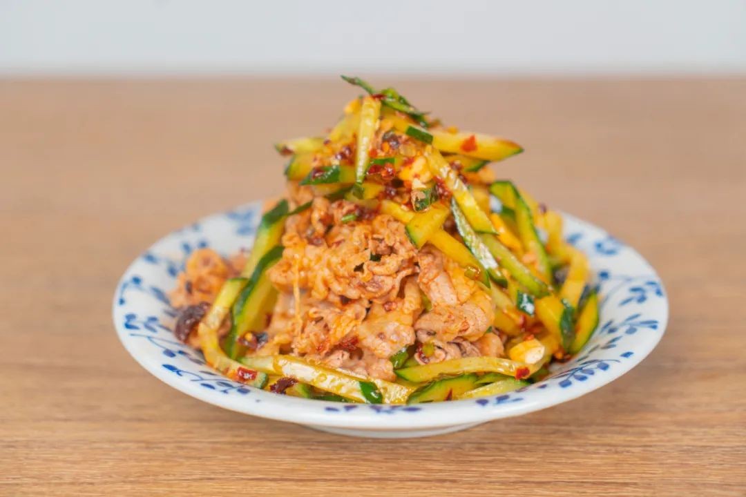 食材:猪肉、桃园建民牛肉耗辣椒、葱姜蒜、黄瓜、香菜、醋、酱油、香油、盐