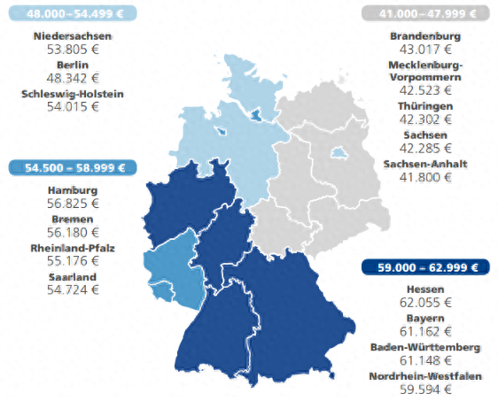 另外,前东德联邦州的平均家庭可支配收入也达到了西德地区的85%,计入购买力的可支配收入更是已经达后者的92%,甚至已经高于诸如下萨克森、萨尔州等相对欠发达的原西德联邦州;对于退休人员而言,东德地区的平均退休工资同样也已经达到了西德地区94%的水平。