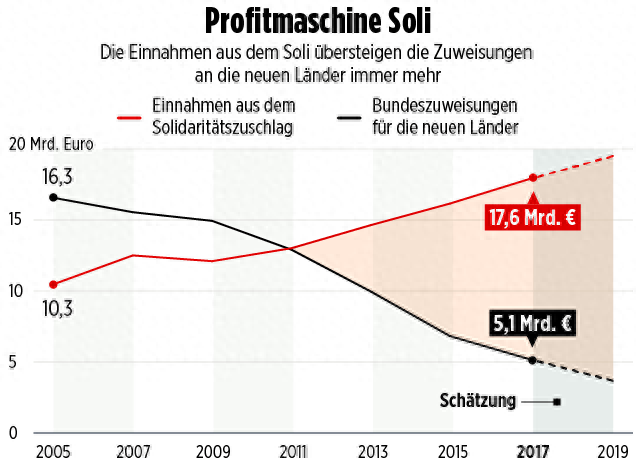 基建项目修无可修的背后是西德居民30年来连续不断缴纳的“团结税”。相比与上世纪90年代西德居民踊跃缴纳援助东德的团结税,如今却有超过63%的西德人认为应当彻底废除该税目。即便是默克尔政府也已于今年8月将于2021年取消团结税。