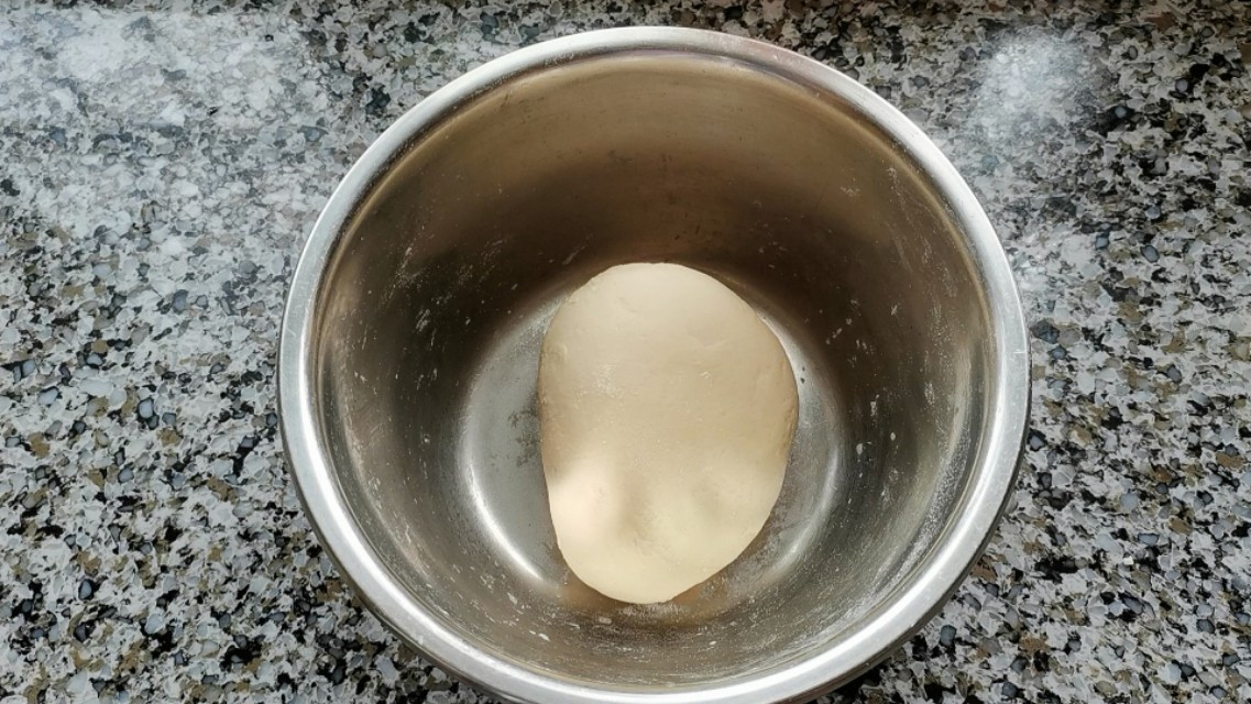 (此方法做出的饺子,皮子不硬,劲道,不爱破皮。盖上盖子放一旁醒发备用。)