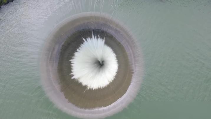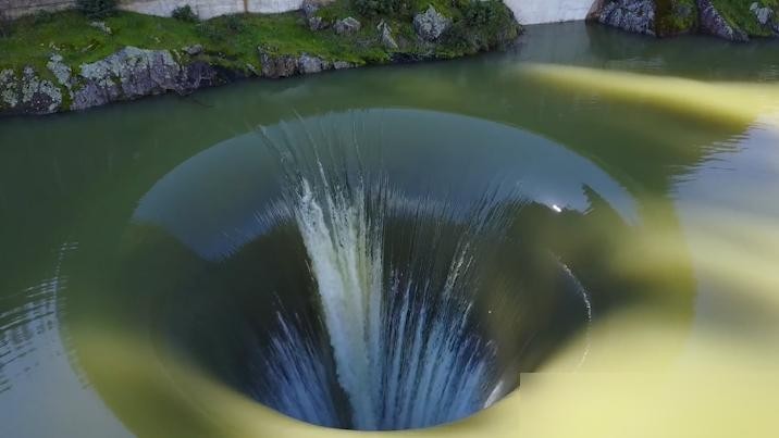 同时漏斗状的设计,方便了光荣洞的建造,并且可以让坝顶上产生一个类似于环形的流动,这种流动便是一种环形旋涡。