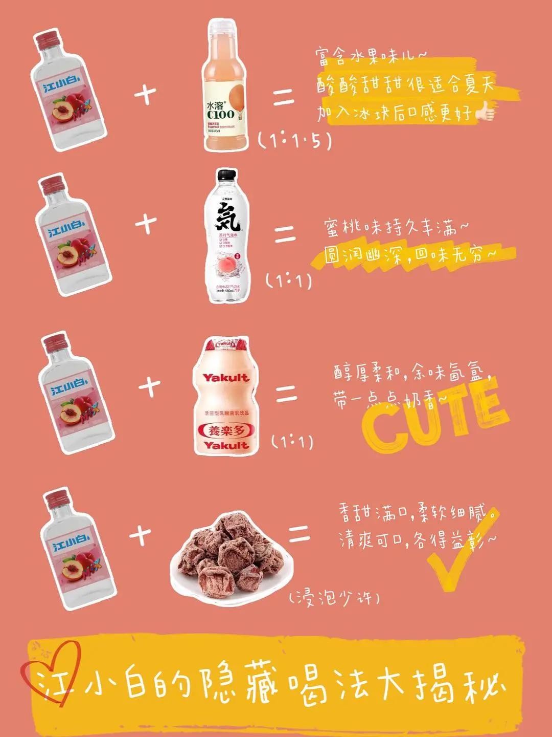 果立方系列推出后,江小白将重点放在产品自身的体验上,玩起了#江小白混饮#的戏码。比如江小白和旺仔联合,鼓励用户混合制成一杯“忘仔酒”;或是和可口可乐混合,再加上橙汁、冰块制成一杯“特制长岛冰茶”。市面上几乎所有知名的饮品,江小白都能进行“梦幻联动”,而这种隐藏式喝法大揭秘,容易让消费者产生猎奇心理,也容易与竞品产生区分。