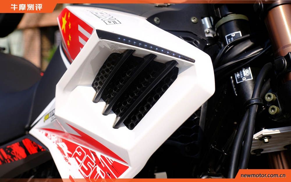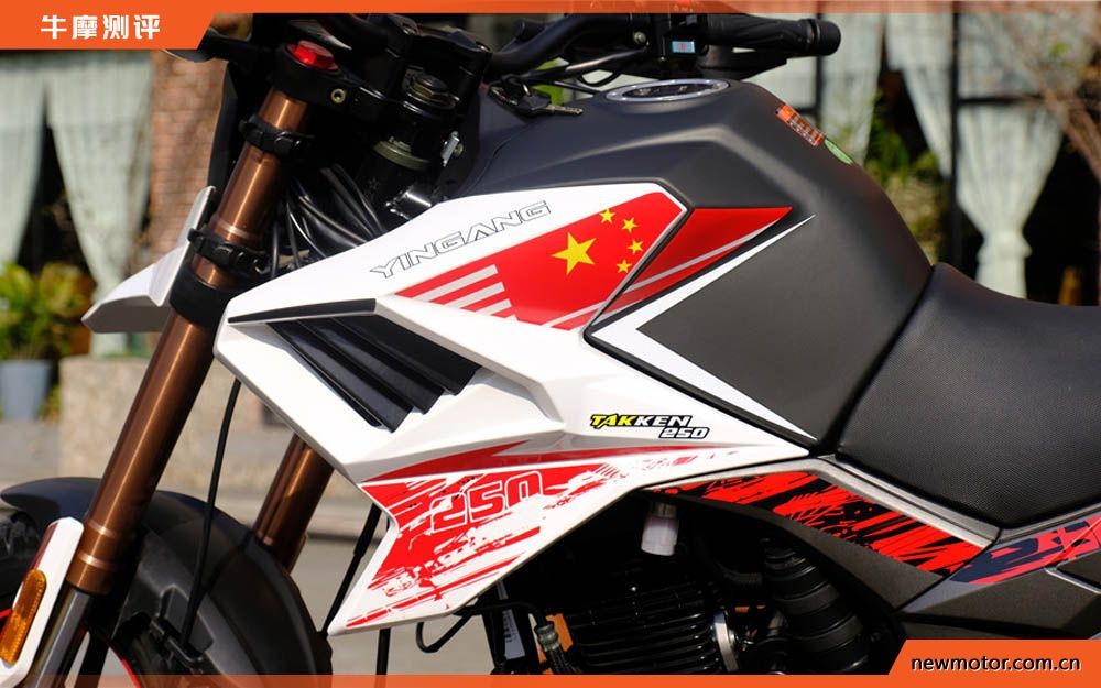 中国红涂装十分醒目,一眼就能看到在油箱位置喷涂的五星红旗,全车多处为类火焰状涂装,看起来相当精神,醒目。