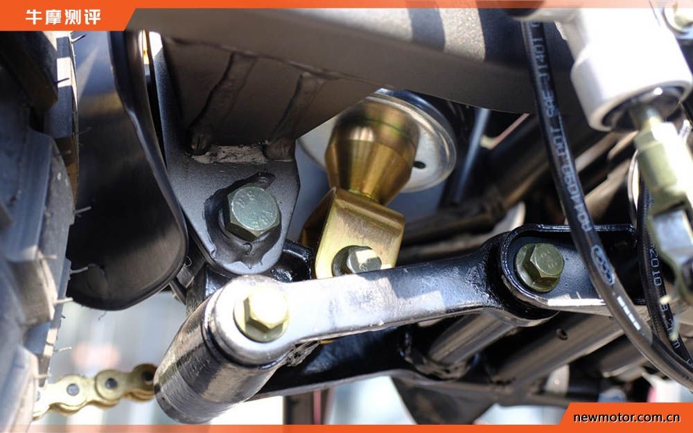 国四版铁拳前减震为倒置式,不可调节。后减震为中置多连杆形式。
