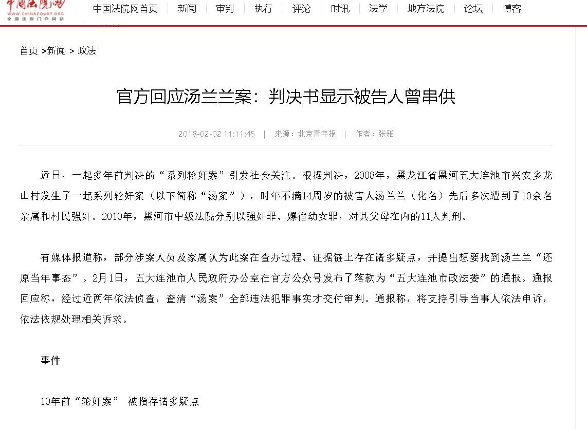 官方回应汤兰兰案:判决书显示被告人曾串供