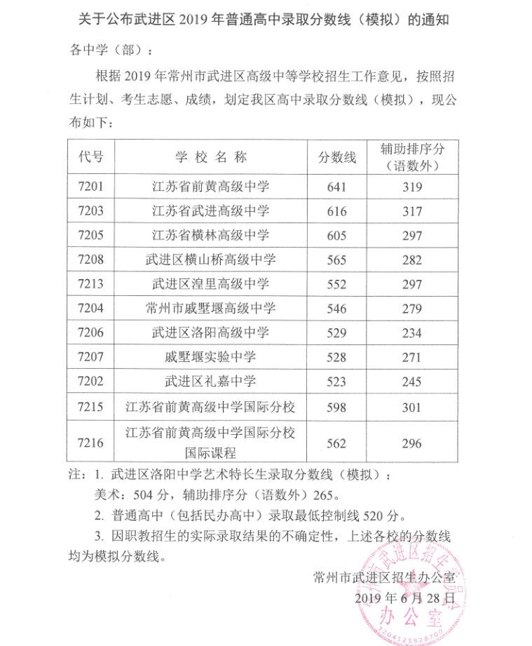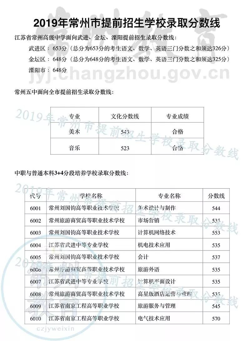 权威发布!2019年常州中考分数线出炉(含武进、金坛、溧阳)!另附8所民办学校