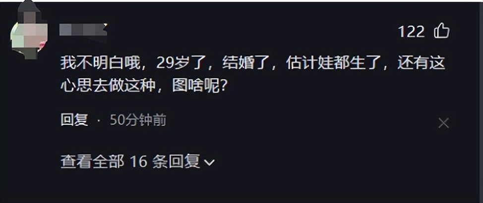 一位女性网友质疑地说:“我不明白哦,29岁了,结婚了,估计娃都生了,还有这心思去做这种,图啥呢?”这位网友认为在已经承担家庭责任的情况下,追求外貌上的完美是否多余。这个观点提醒我们要反思自己对美的定义和个人价值观。