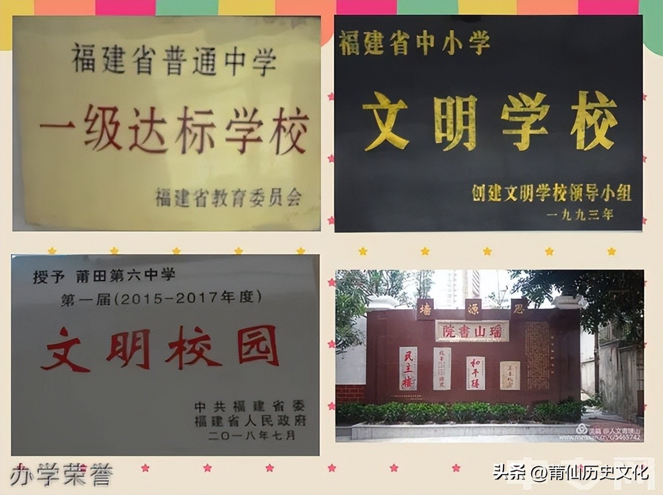 莆田六中坐落于涵江区青璜山上,望江环流,古松掩映,前身可追溯至明弘治年间的瑶山书院。学校正式创办于1924年,1959年被确立为福建省重点中学,2001年被评为福建省一级达标中学。