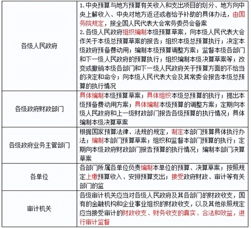 《中华人民共和国预算法》对立法机关、各级政府、政府财政主管部门和预算执行部门、单位的预算管理职权做了明确规定。