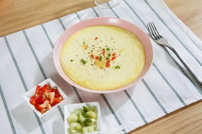 4.舀两勺粉浆、半个鸡蛋,适量葱花