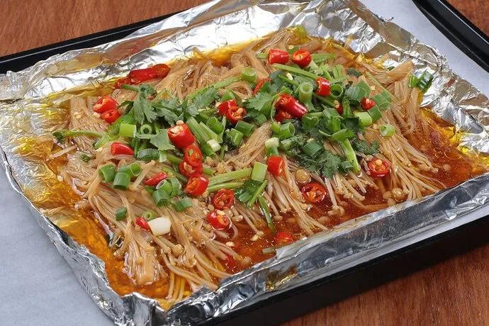 2.金针菇金针菇去根洗净沥干水份放入盘中