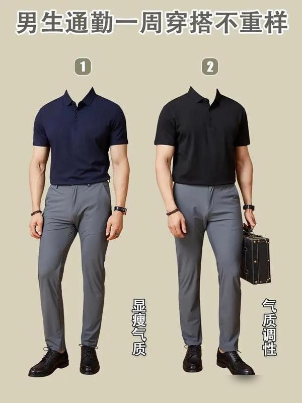 比如6A级桑蚕丝Polo衫,触感丝滑透气,比普通棉质更轻盈,周一穿浅蓝款搭灰色九分裤,周三换黑色款配同色系西裤,周五试试撞色条纹款,三天不重样还能保持体面。