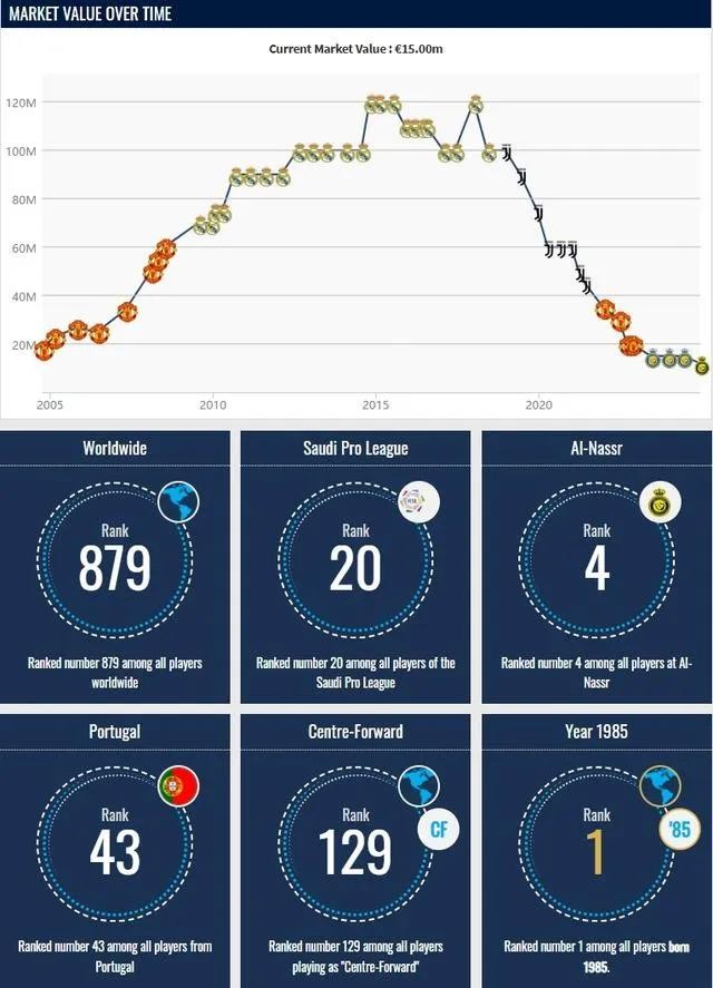 39岁C罗身价曝光,1200万欧却稳居同龄球员之巅!