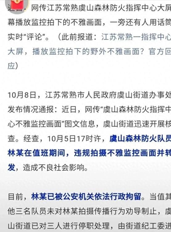 在网络时代,信息的传播速度之快令人咋舌。然而,一起涉及隐私泄露的事件近日成为了焦点。江苏常熟虞山森林防火指挥中心的大屏幕竟播放了监控拍摄的不雅画面,更让人震惊的是,一旁还有人用话筒进行实时“评论”。