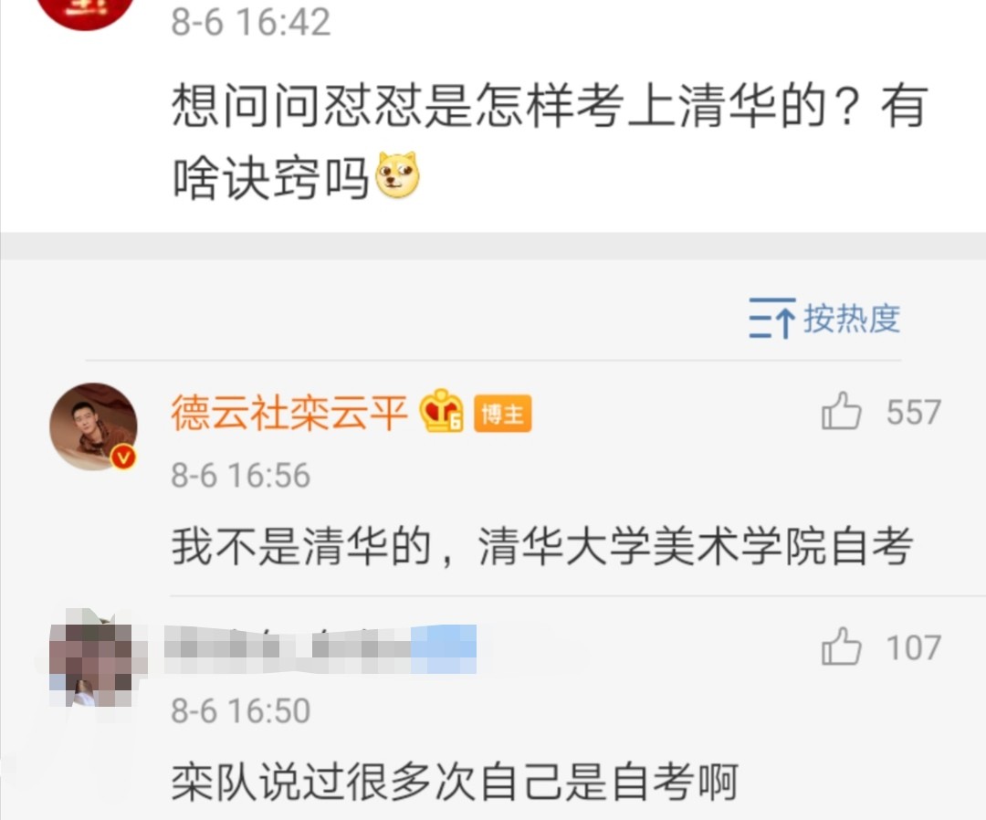 网友想从学霸这汲取点学习窍门,不料问差人啦,栾云平又一次强调,自己不是清华的,是自考。