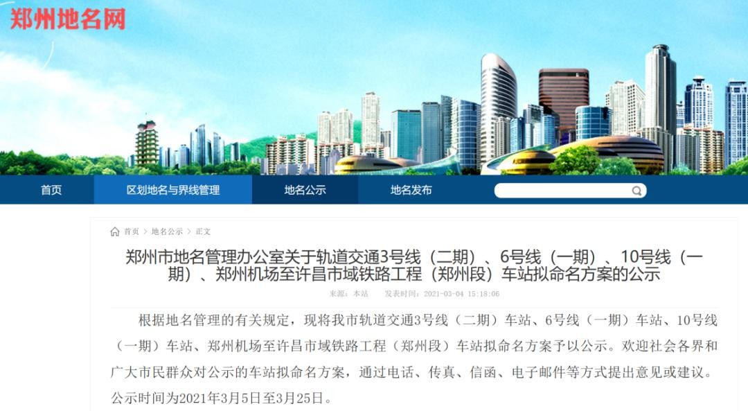 经记者查询,2023年8月21日,郑州地铁网站根据地名管理有关规定,针对轨道交通7号线(一期)、8号线(一期)、12号线(一期)车站拟命名方案予以公示。其中,大学中路站因与6号线换乘,已确认命名。