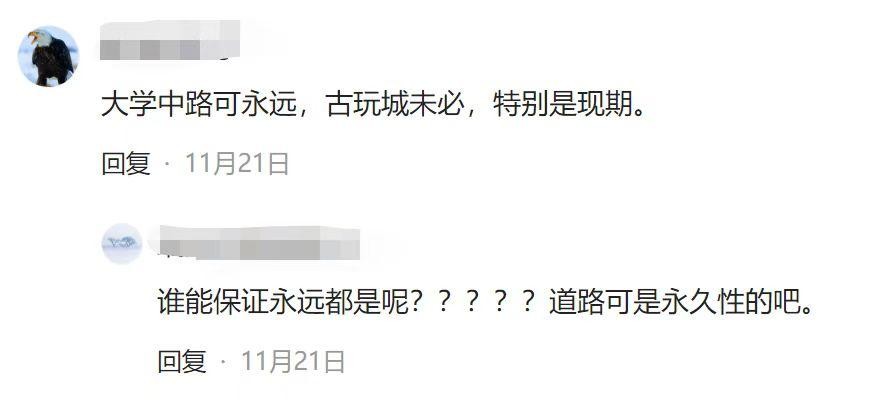 一些网友表示古玩城已建成多年,存在拆迁换址的可能;而道路则是相对稳定的,在较长期的预测中变更规划的可能性较低。因此“大学中路站”的名字从长期来看持久度更强。