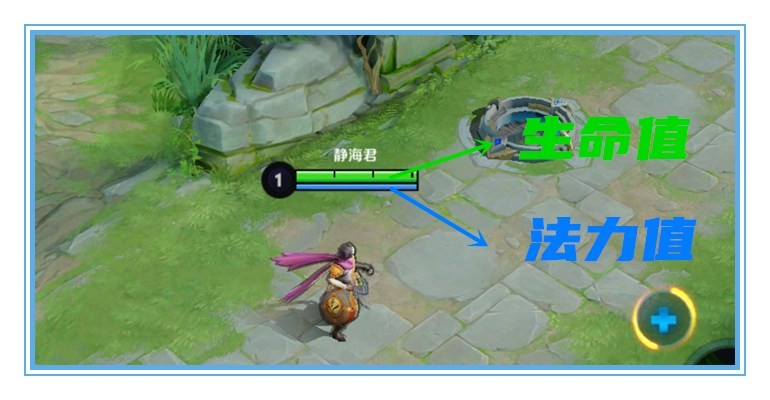 大多数英雄都会拥有绿条和蓝条,绿条代表生命值,蓝条代表法力值。生命值归零后,英雄就会阵亡;法力值归零(不够时),英雄就无法释放技能。