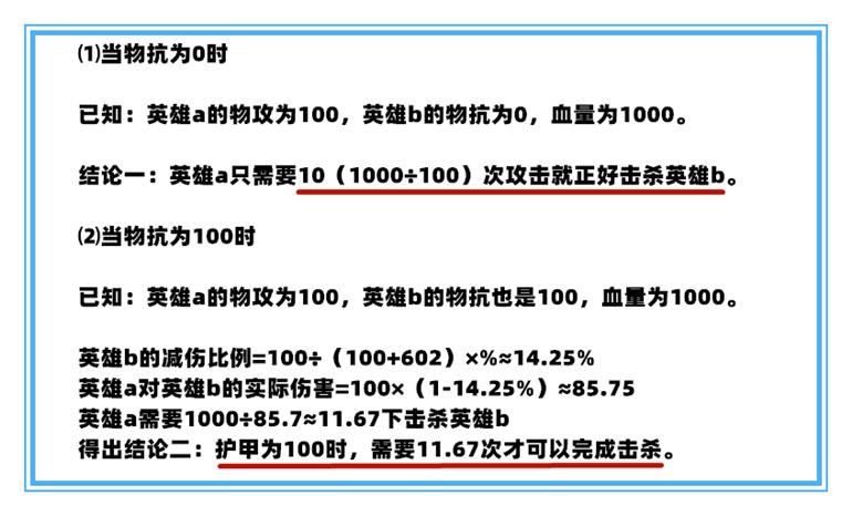 所以,我们可以测试,在受到同样的攻击时,物抗为0和物抗为100的英雄,他们数据对比。