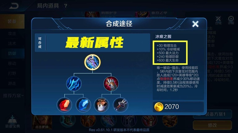加强了属性还不算完,和之前相比,因为有新装备的加入,最新的冰痕之握的合成途径有了很大的提升。