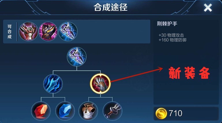 荆棘护手是目前唯一一个,以二级防装的形式拥有物攻属性的装备。一个布甲+一个铁剑的合成方式让它攻守兼备,性价比极高。