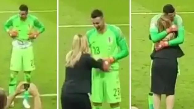 克罗地亚门将不顾国际足联禁令意图再次掀起球衣!这时她拥抱了他