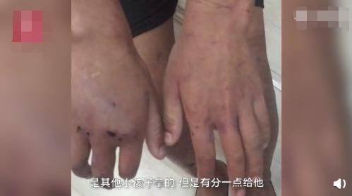 原来,被绑在柱子上的小男孩是一名留守儿童,被打的原因是村民怀疑这个小孩偷钱。男孩的身上有很多伤,男孩小叔邱先生表示,之前发现孩子身上有伤口,但是问他是谁又不说,也不知道是谁打的,(这次)小孩就亲口说不是他那的(钱),是其他小孩子拿的,但是有分一点给他,就是人家拿的,把那些钱给他,扯到他身上,就把他抓回来恶打。