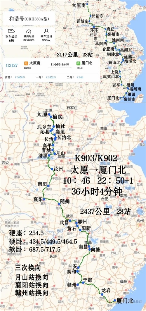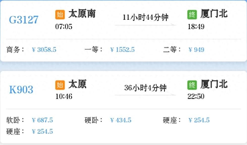 太原到厦门只有一趟高铁G3127次和一趟绿皮火车K903次,你会怎么选择?