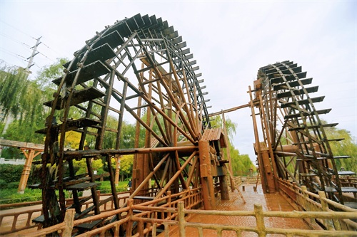 清新的自然环境和古香古色的水车、磨坊相映成趣,走在园内,河道蜿蜒,水车旋转,处处是让人向往的田园风情。