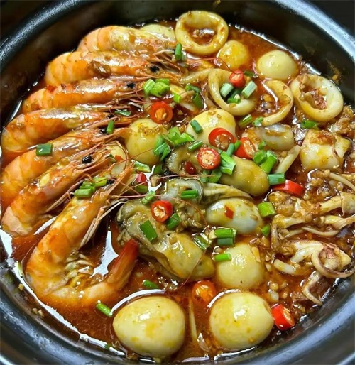 6.蒜蓉生蚝虾仁海鲜煲
